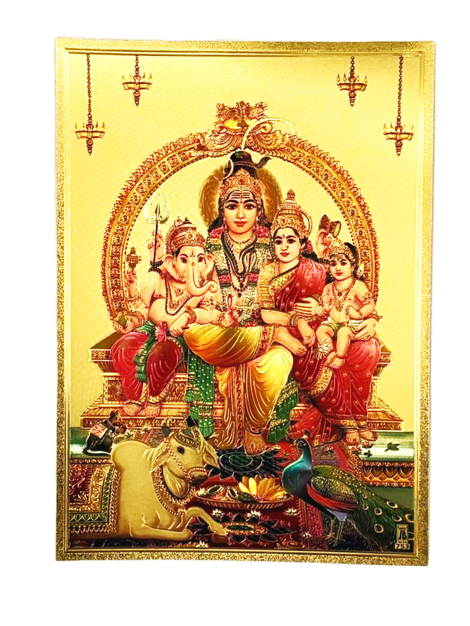 Lord shiva parivar printed on golden fibre sheet (12 * 9 inches/ A3)