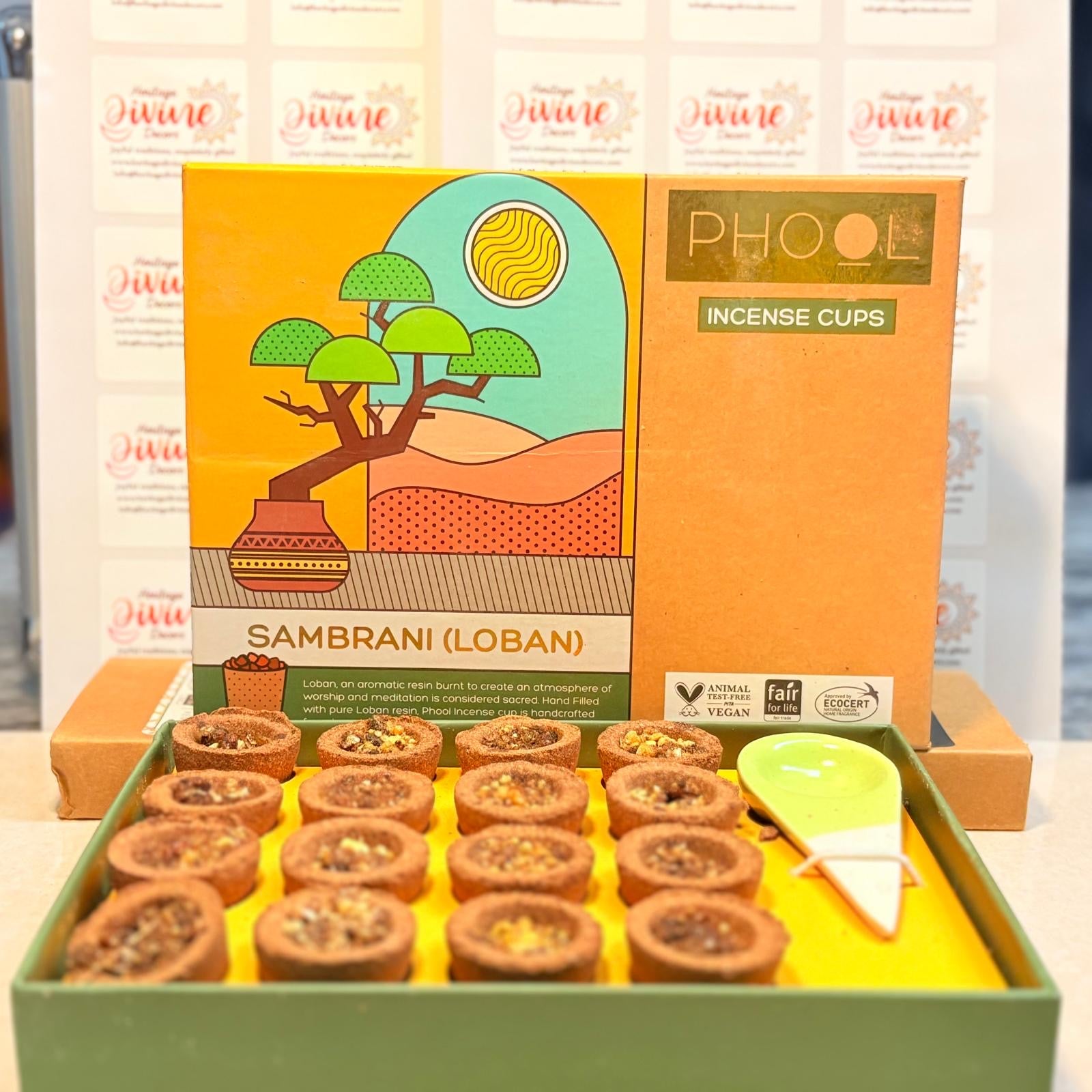 Purify your home with the enriching fragrance of Phool Sambrani Havan cups.A fragrance of the kings Sambrani(Loban)- a precious resin has traveled all the way from Java an Indonesian island to become a mainstay of Indian aura cleansing rituals due to its abundant therapeutic and spiritual properties . Phool Sambrani Havan cups are certified by Fairtrade Fair for Life standard and approved by Ecocert Greenlife Home Fragrance Standard.You can be rest assured of the purity of its fragrance!